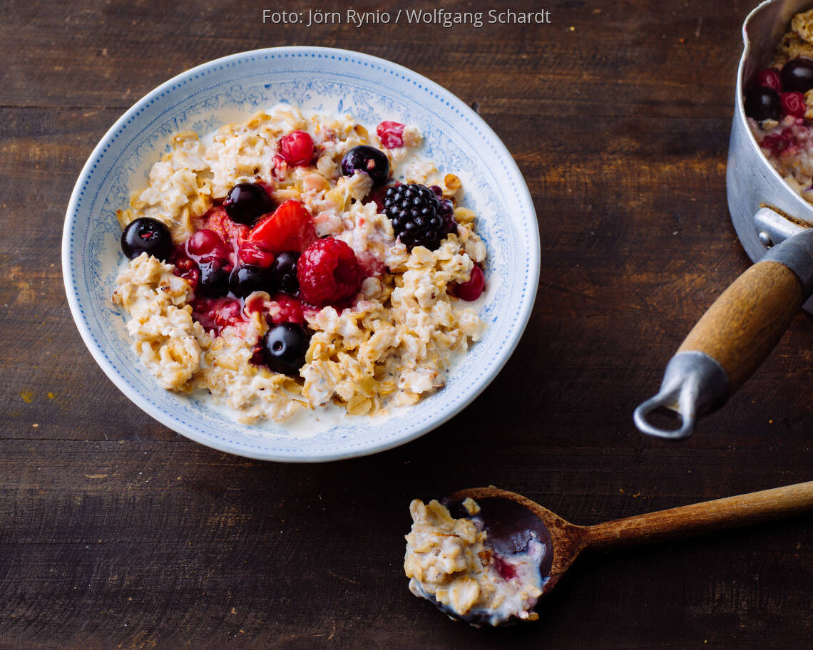 Butter in einer Pfanne erhitzen und die Haferflocken darin leicht bräunen. Die Milch zugeben und unter ständigem Rühren, damit die Milch nicht anbrennt, 10 Min. einkochen lassen. Anschließend den Porridge 5 Min. auf der ausgeschalteten Herdplatte nachquellen lassen.