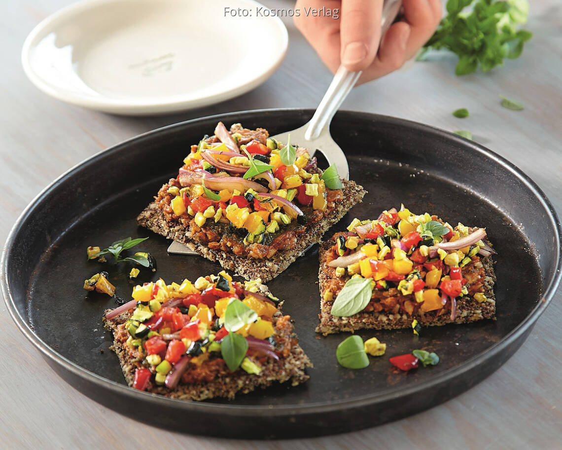 veganes Rezept von Boris LauserDer italienische Klassiker komt hier nicht aus dem Steinofen, sondern aus dem Dörrautomat. Und währen dich Pizza aus Weißmehl eher meide, könnte ich diese leckere, nährstoffreiche Rohkost-Variante aus Quinoa jeden Tag genießen.