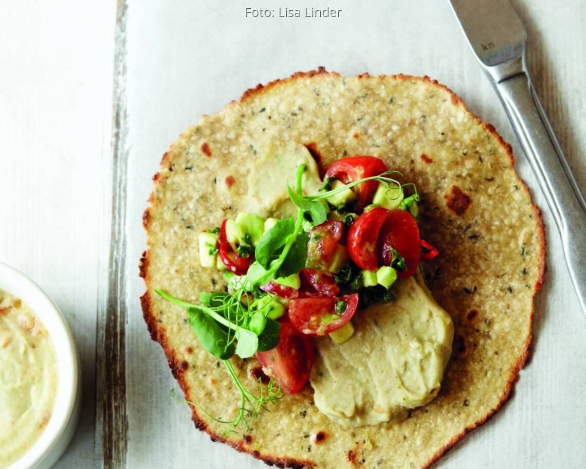 Foto: Lisa LinderQuinoafladen mit Limabohnen-Hummus und Tomatensalsa