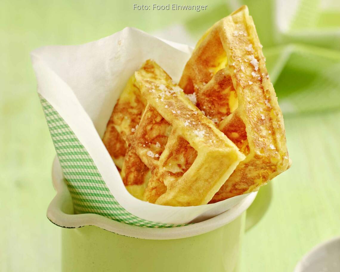 Das Waffeleisen auf mittlerer Hitzestufe vorheizen. Wenn die Backtemperatur erreicht ist, die Backflächen mit wenig weicher Butter bepinseln. Etwa 3 EL Teig in die Mitte der unteren Backfläche geben. Das Waffeleisen ohne Druck schließen. Die Waffel in ca. 4 Min. goldgelb backen. Auf ein Kuchengitter legen, sodass die Waffel etwas abkühlen kann. Weitere Waffeln backen, bis der Teig vollständig aufgebraucht ist. Die noch warmen Waffeln sofort servieren.