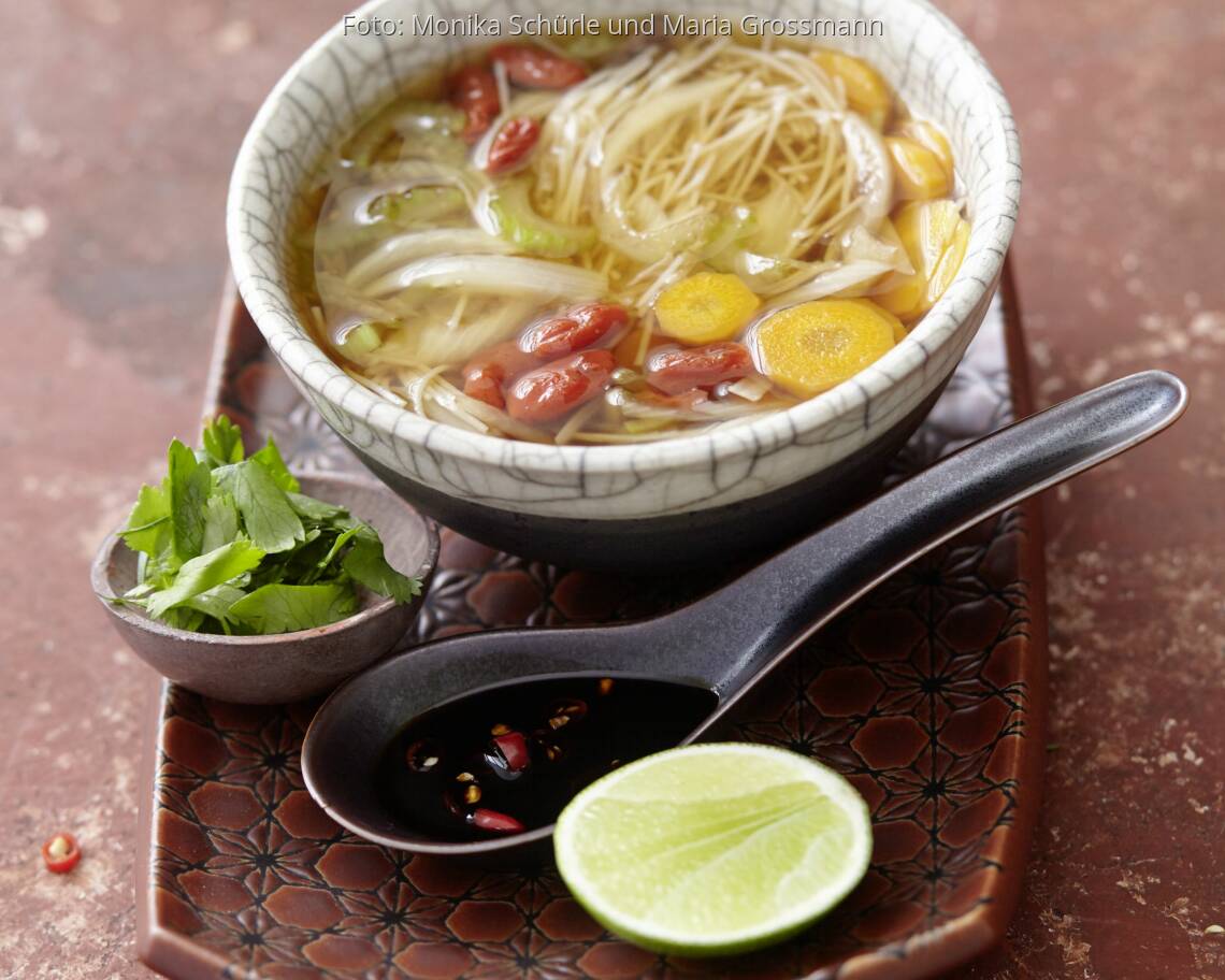 Foto: Monika Schürle und Maria GrossmannReisnudelsuppe mit Gojibeeren