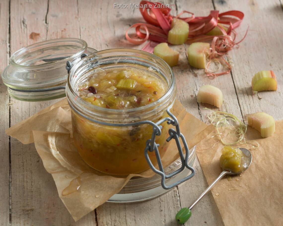 Gelierzucker, Rhabarber und Korinthen dazugeben. Erneut aufkochen und 2–3 Min. kochen lassen, bis der Rhabarber weich ist, aber noch nicht zerfällt. Mit Salz abschmecken, heiß in ein sauberes Twist-off-Glas füllen, verschließen und abkühlen lassen. Das Chutney passt gut zu Käse.