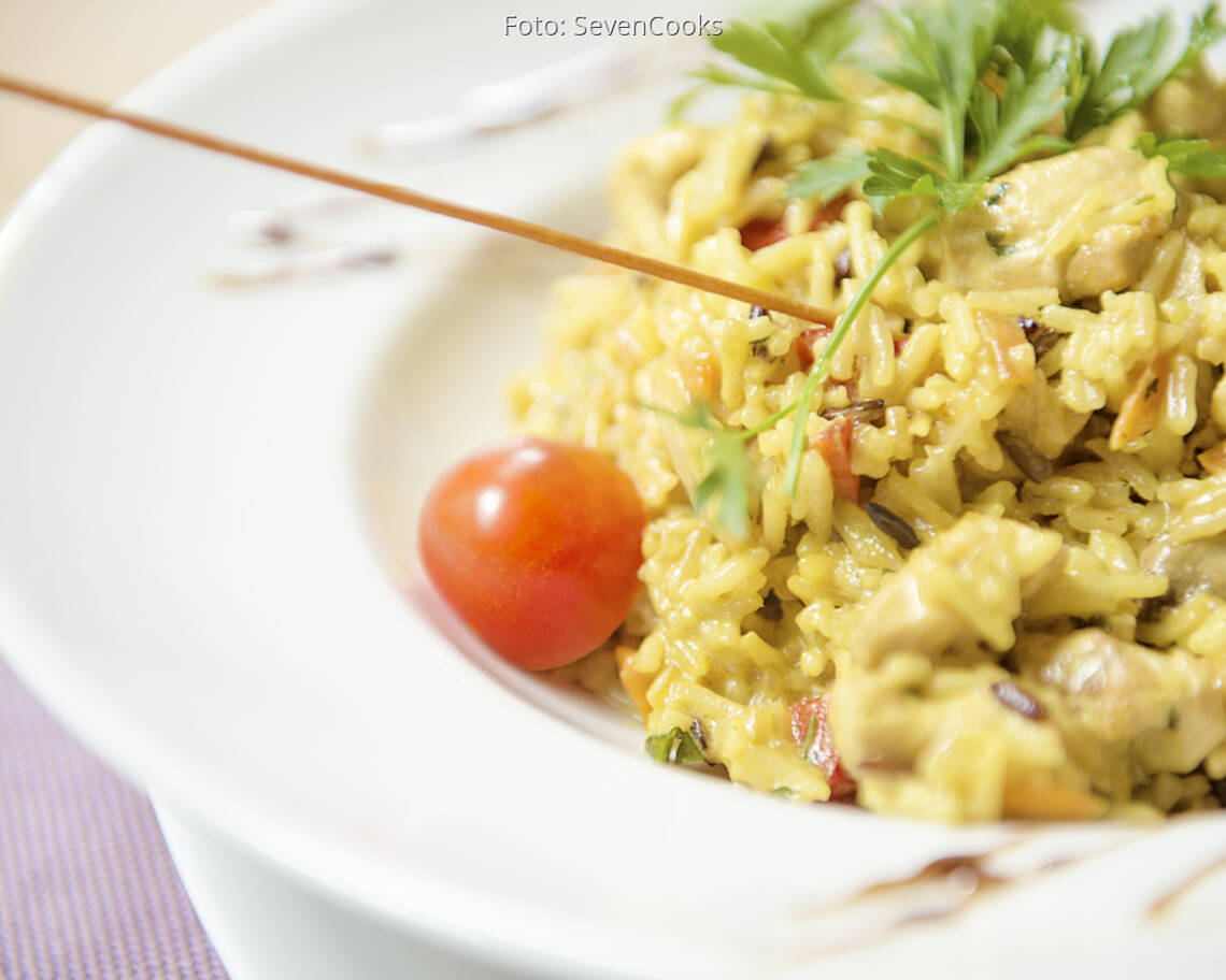 Fruktose (Fruchtzucker) ist ein Einfachzucker, der in unterschiedlich hoher Konzentration in vielen Lebensmitteln steckt. Zum Beispiel in Obst, Gemüse, aber auch Honig und Haushaltszucker. Mit diesem Icon weisen wir auf Lebensmittel im Rezept hin, welche einen Fruktoseanteil von über 2000 mg pro 100 g haben.veganes Risotto al Funghi mit Salat wirkt Vata neutral – Pitta neutral – Kapha neutral
