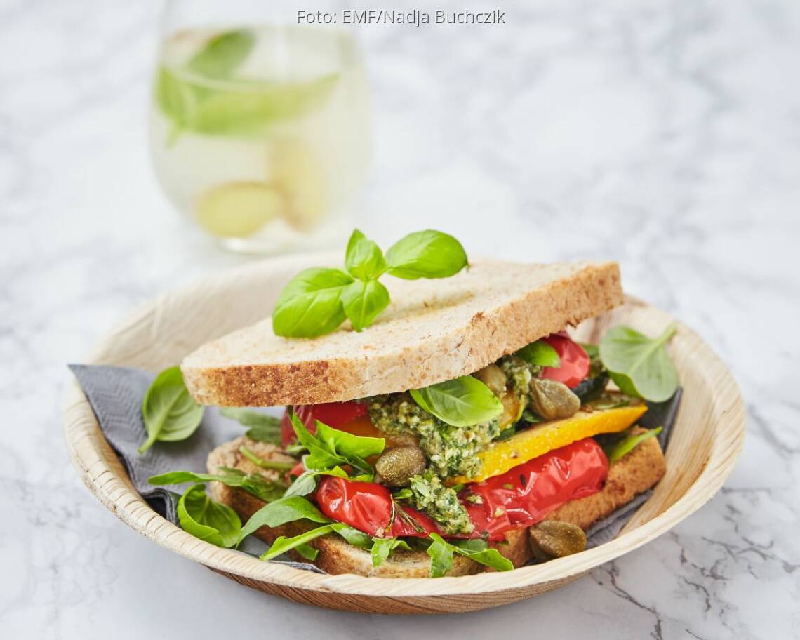 Foto: EMF/Nadja BuchczikRöstgemüse-Sandwich mit Kapernpesto