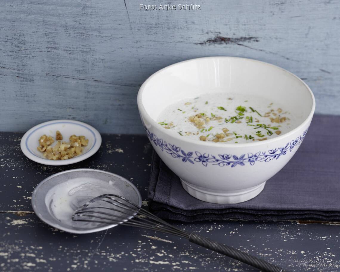 Walnüsse grob hacken und mit dem Schnittlauch unterheben.