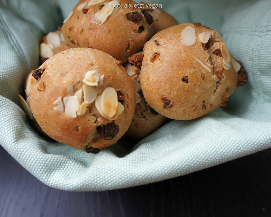 Ab aufs Backblech mit Backpapier und mit Sojadrink bestreichen (optional noch mit Mandelblättchen verzieren).