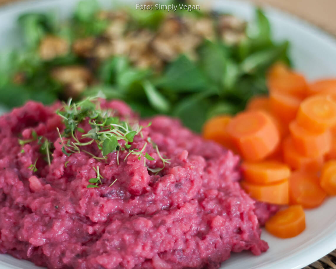 Foto: Simply VeganRote Bete-Kartoffel-Püree mit Möhrengemüse