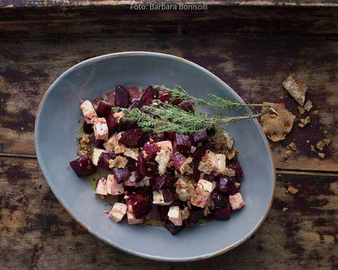 Foto: Barbara BonisolliRote-Bete-Salat mit Knäckebrot und Thymian
