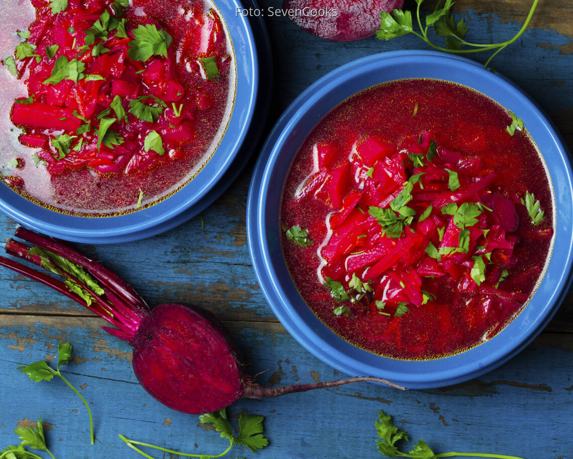 vegetarisches Rezept von Harsha GrammingerRote Bete-Suppe mit Koriander wirkt Vata neutral – Pitta neutral – Kapha neutral