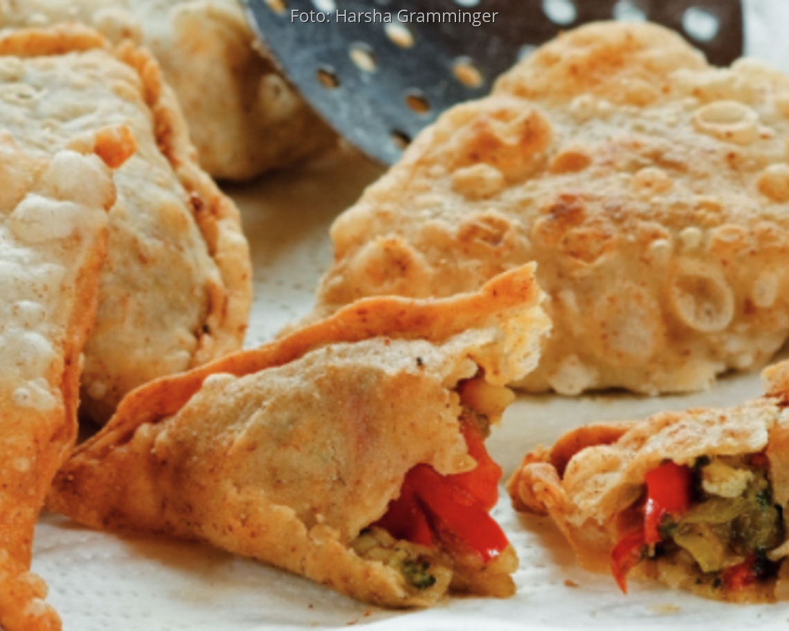 vegetarisches Rezept von Harsha GrammingerSamosa wirkt Vata neutral – Pitta erhöhend ↑ – Kapha verstärkend ↑