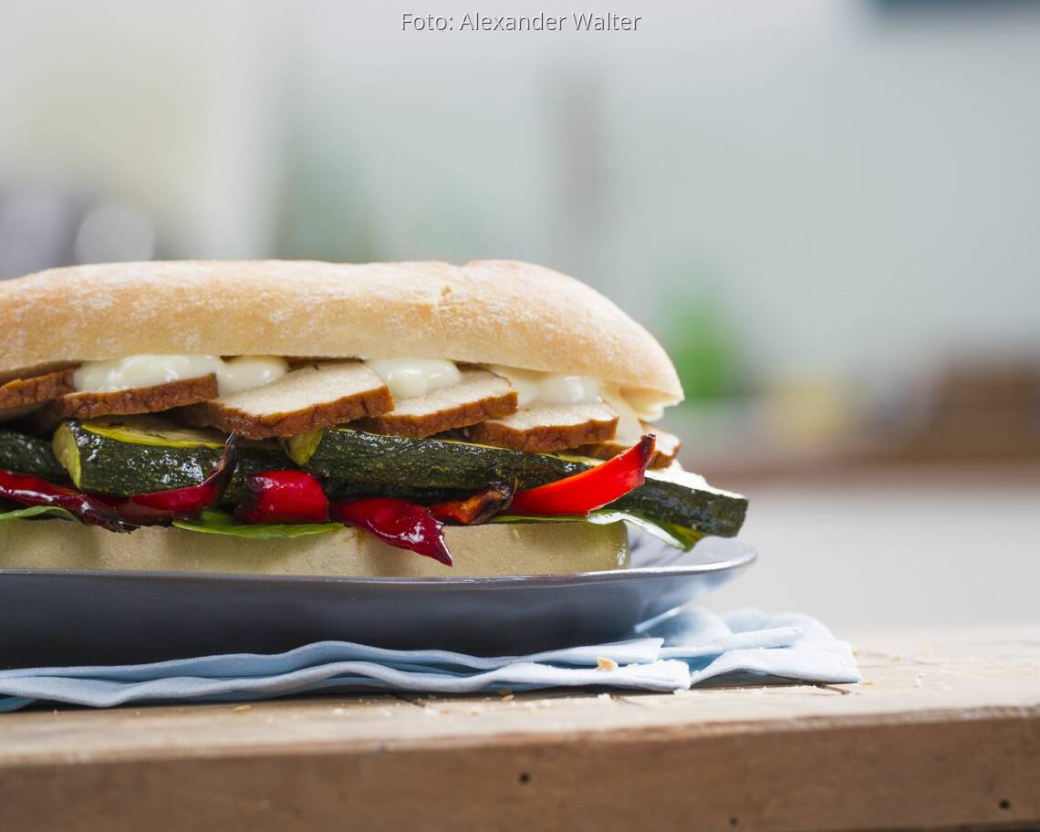 Foto: Alexander WalterSandwiches mit Räuchertofu und Ofengemüse