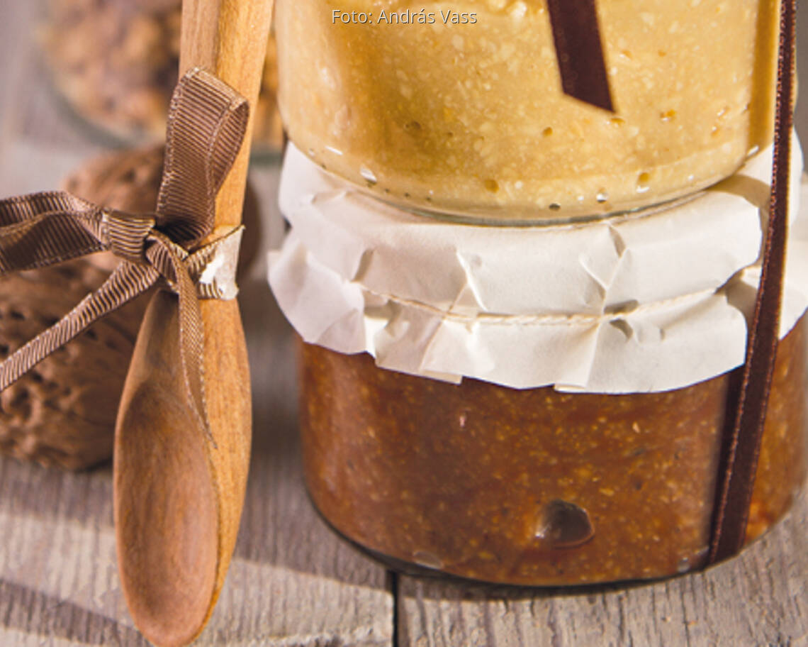 Die Walnüsse ohne Öl leicht rösten, dann fein mahlen. In die Küchenmaschine geben, den Honig, das Öl und die über Wasserdampf geschmolzene Bitterschokolade zugeben.