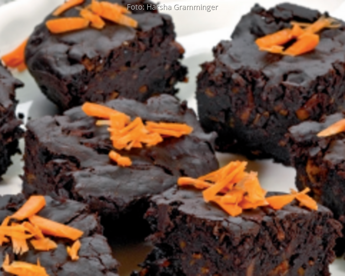 vegetarisches Rezept von Harsha GrammingerSchokoladen-Karotten-Kuchen wirkt Vata neutral – Pitta neutral – Kapha verstärkend ↑