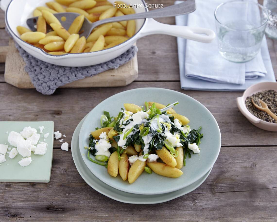 Foto: Anke SchützSchupfnudeln mit Spinat-Feta-Gemüse