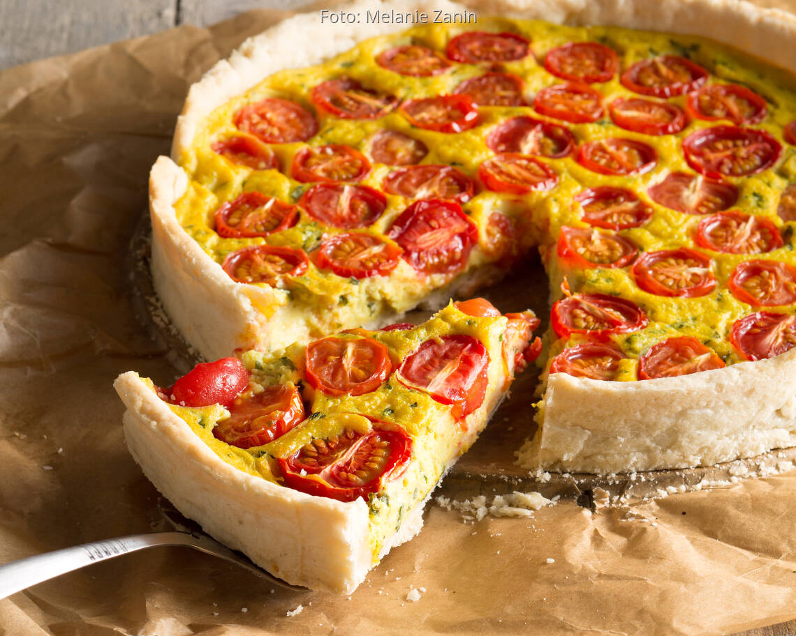 Foto: Melanie ZaninSeidentofu-Guss auf Tomatenquiche