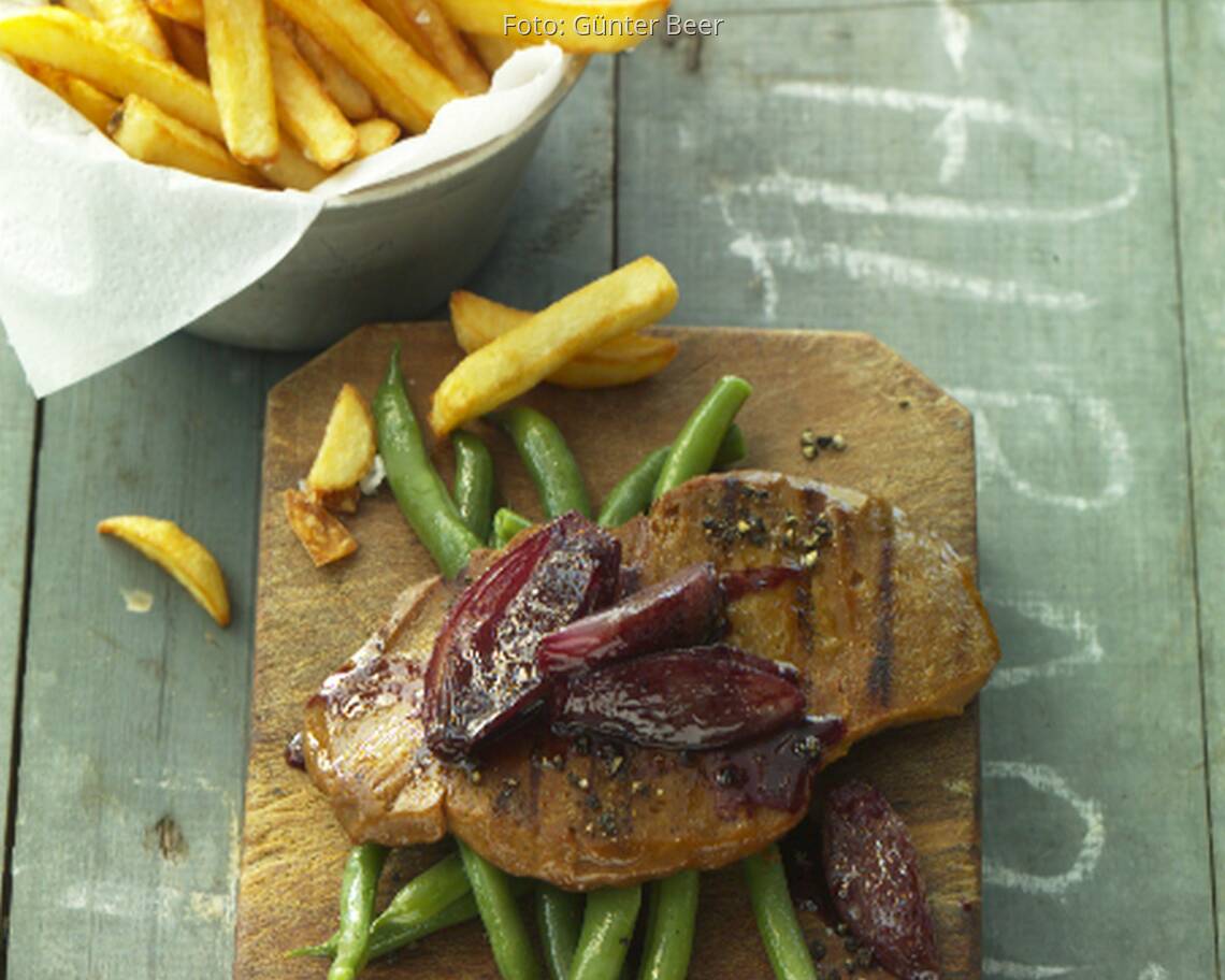 Foto: Günter BeerSeitan-Steak mit Rotweinschalotten