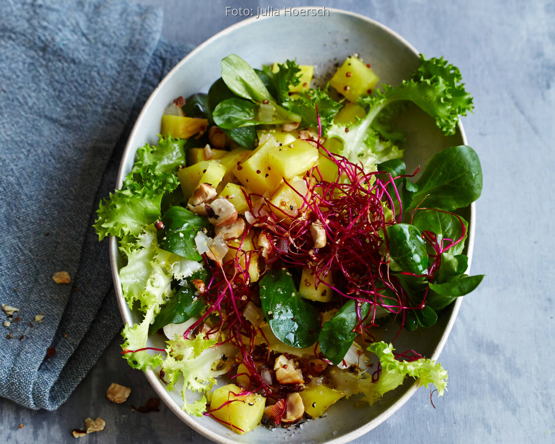 Foto: Julia HoerschSellerie mit Haselnuss, Feldsalat und roter Kresse