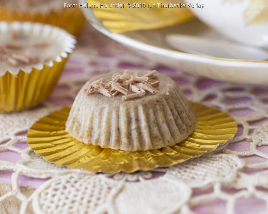Falls die Creme aus Tahini und Kokosöl noch zu flüssig zum Befüllen der Förmchen ist, kann sie vor der Weiterverarbeitung ganz kurz in den Kühlschrank gestellt werden.