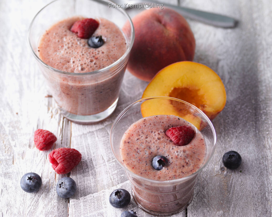 Foto: Kramp/GöllingSmoothie mit Beeren, Pfirsichen und Banane
