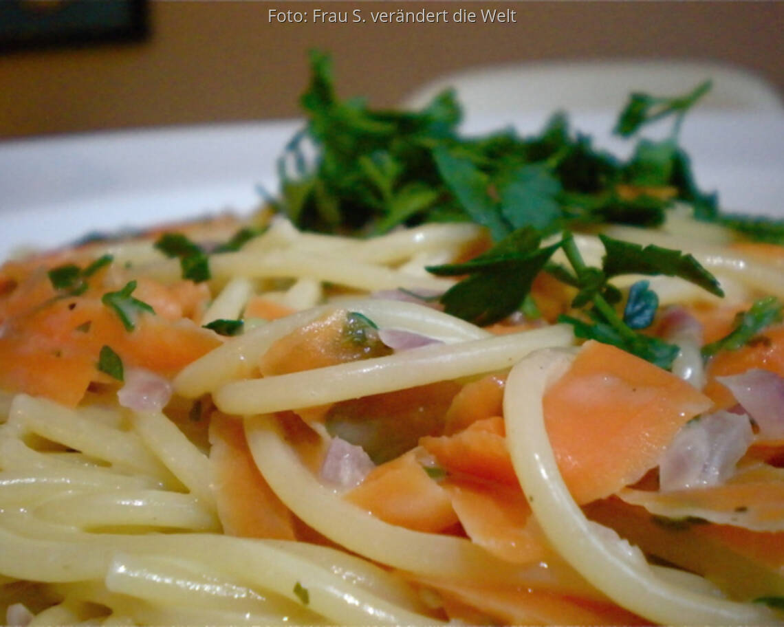 Foto: Frau S. verändert die WeltSpaghetti mit Möhren und Kräutern