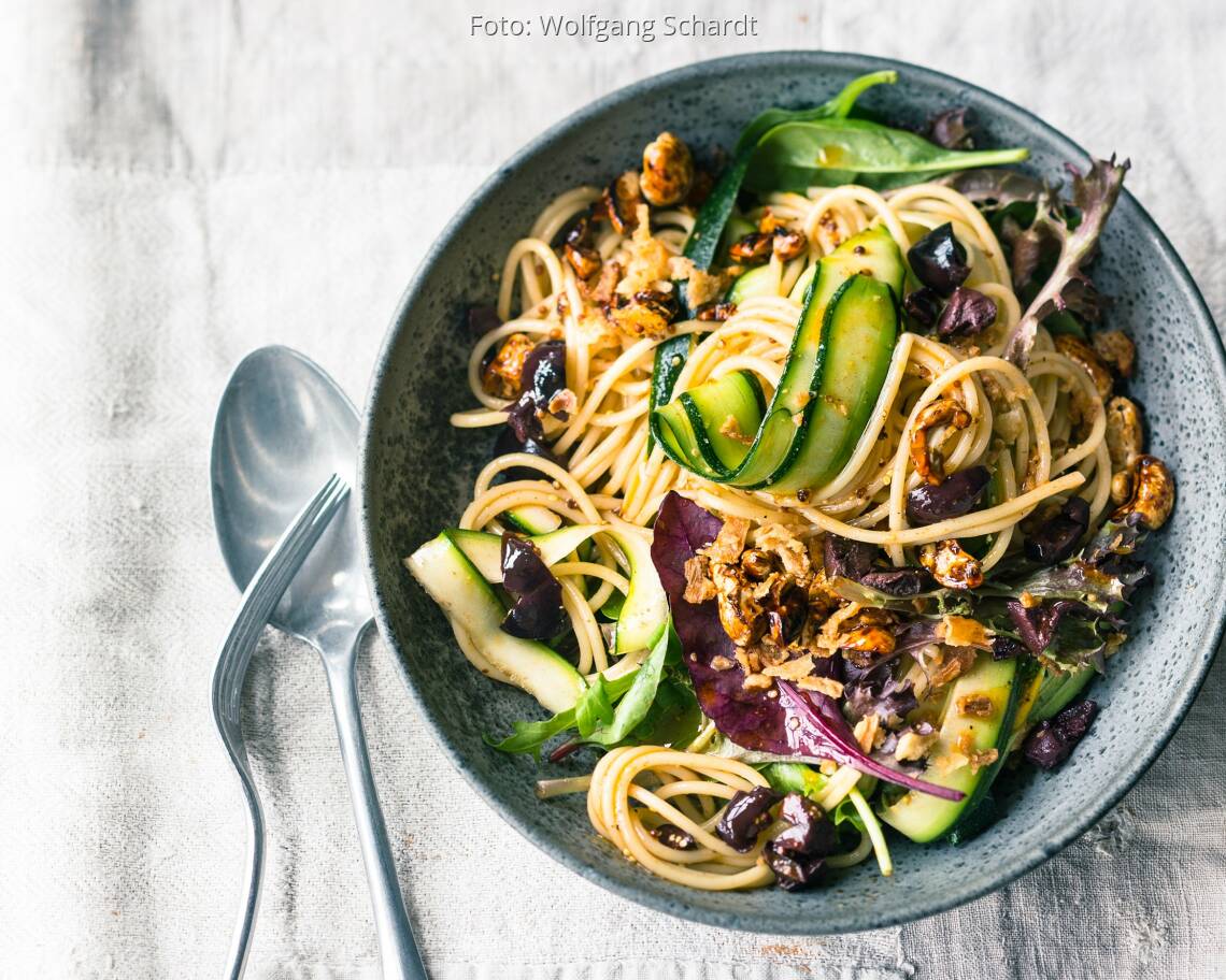 Foto: Wolfgang SchardtSpaghetti-Zucchini-Salat mit Cashew-Sprinkle