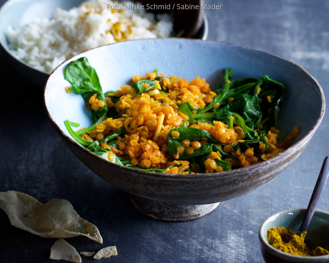 Foto: Ulrike Schmid / Sabine MaderSpinat-Linsen-Dal mit Basmatireis