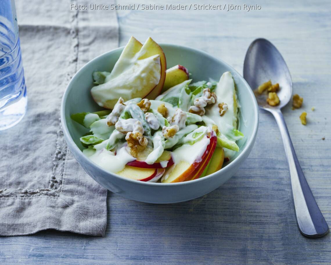 mit Staudensellerie, Apfel, Walnusshälften, Joghurt
