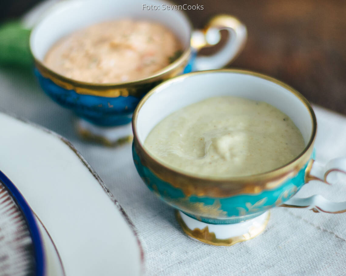 Nicht-Veganer können auch einen Zitronen-Sauerrahm-Dip dazu reichen.
