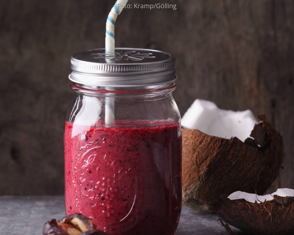 Foto: Kramp/GöllingSuperfood-Smoothie mit Nüssen, Datteln, Kakao und Kokosmus
