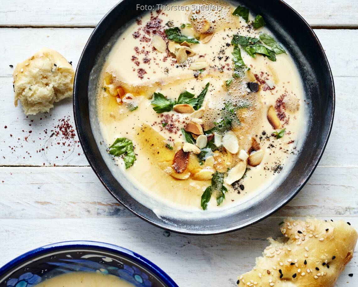 vegetarisches Rezept von Filiz PenzkoferDie Türkei ist nicht nur ein Teetrinkerland, sondern auch ein Suppenparadies. Es gibt Suppe zum Frühstück, nach dem Feiern und zwischendurch sowieso. Diese hier schmeckt warm und kalt.