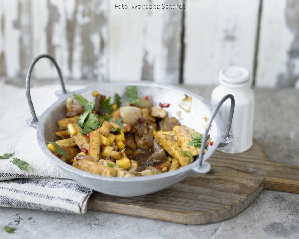 Foto: Wolfgang SchardtTempeh mit Schalotten und Mango