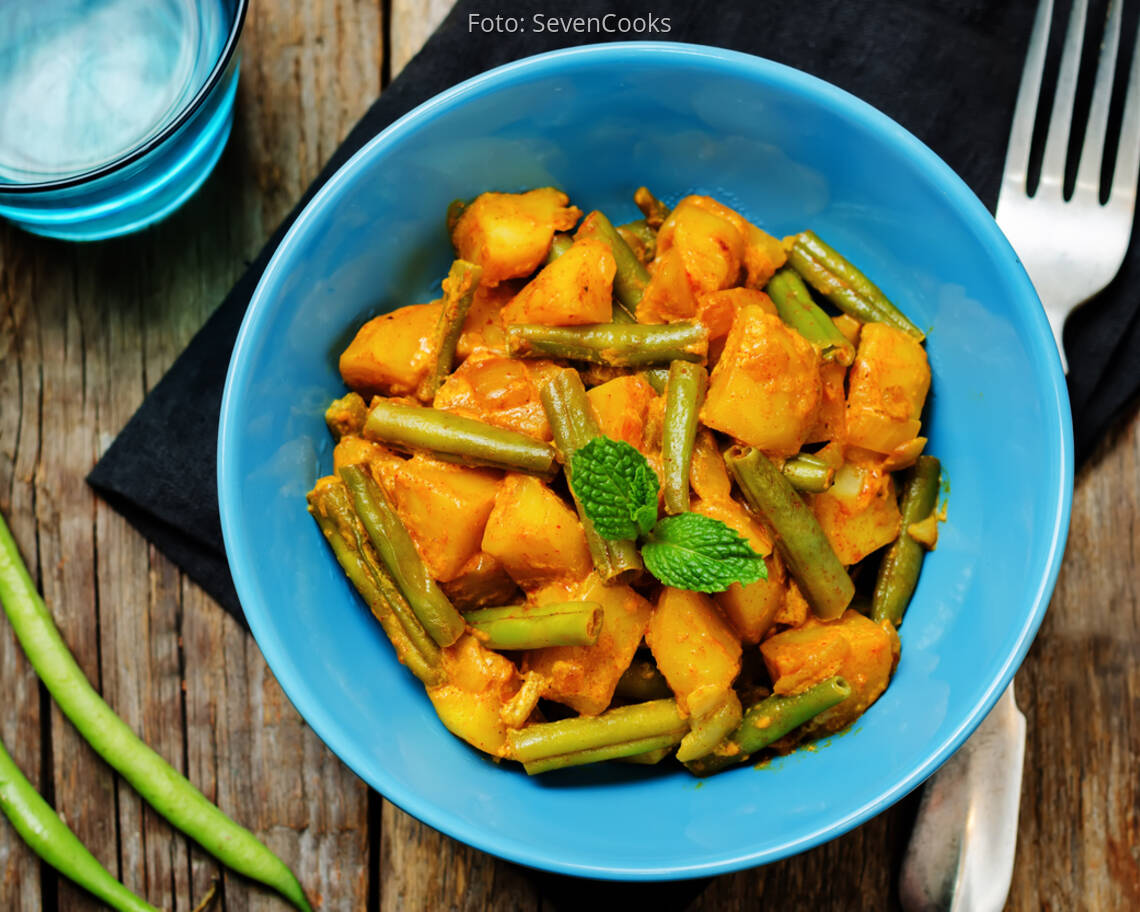 mit Kartoffeln, Tofu, grüne Bohnen, Karotten