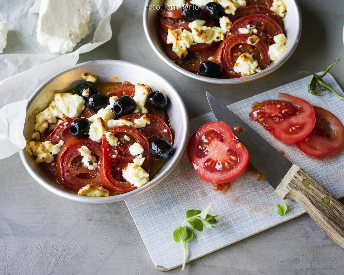 Den Schafskäse zerkrümeln und mit den Oliven auf den Tomaten verteilen. Das Olivenöl darüberträufeln und die Tomaten im Backofen (Mitte) etwa 15 Min. backen, bis der Käse leicht braun ist. Mit frischem Weißbrot servieren.