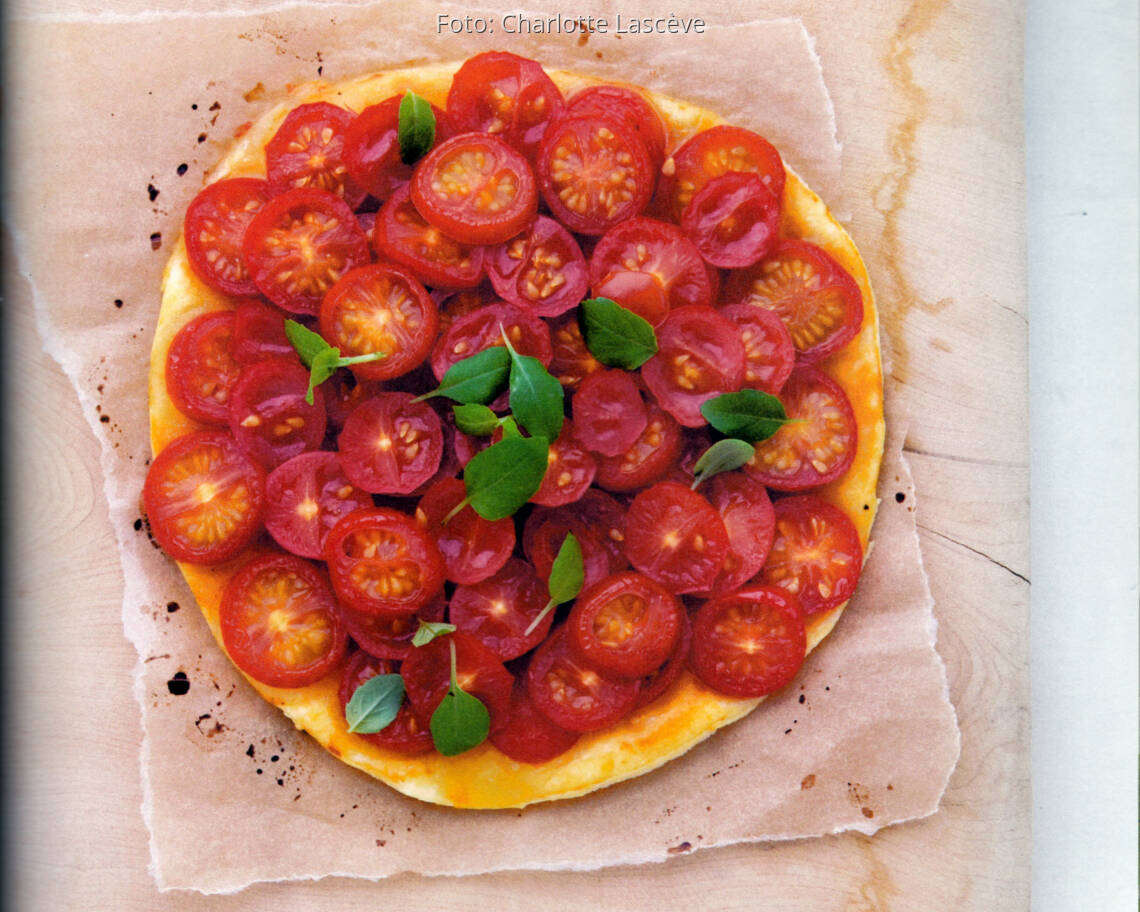 mit Blätterteig, Kirschtomaten, Basilikum, Tomatenmark