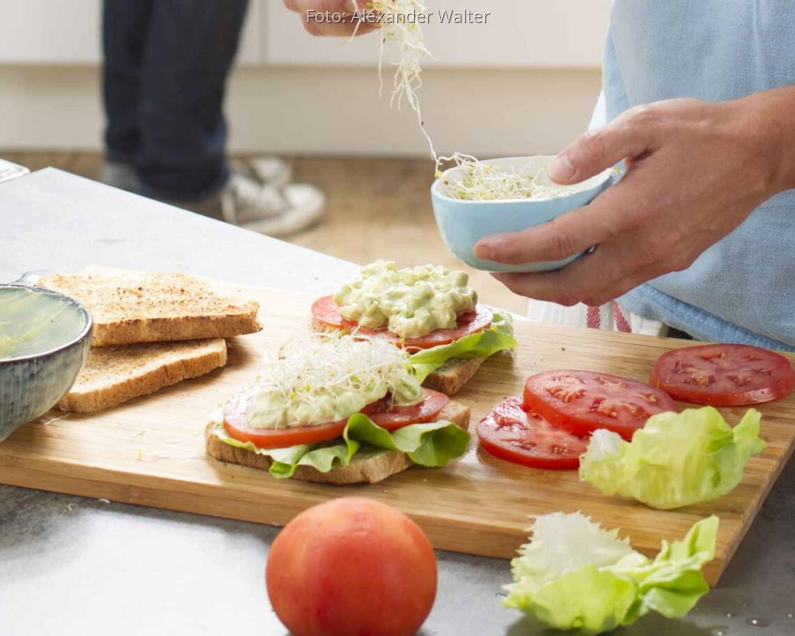 mit Avocado, Zitronensaft, vegane Mayonnaise, scharfer Senf