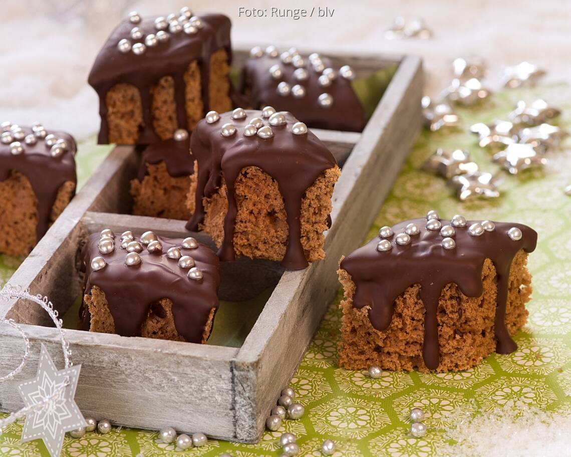 Abkühlen lassen, mit flüssigem Schokoladenguss bestreichen und Walnüssen oder Zuckerdekor verzieren. Wenn die Glasur fest ist, den Lebkuchen in kleine Rauten oder Quadrate schneiden und in Blechdosen lagern. Das Ulmer Brot hält sich mehrere Wochen.