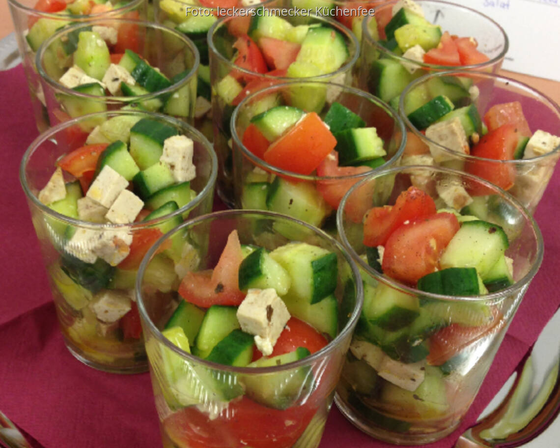Foto: leckerschmecker KüchenfeeVeganer Feta mit Tomaten-Gurkensalat