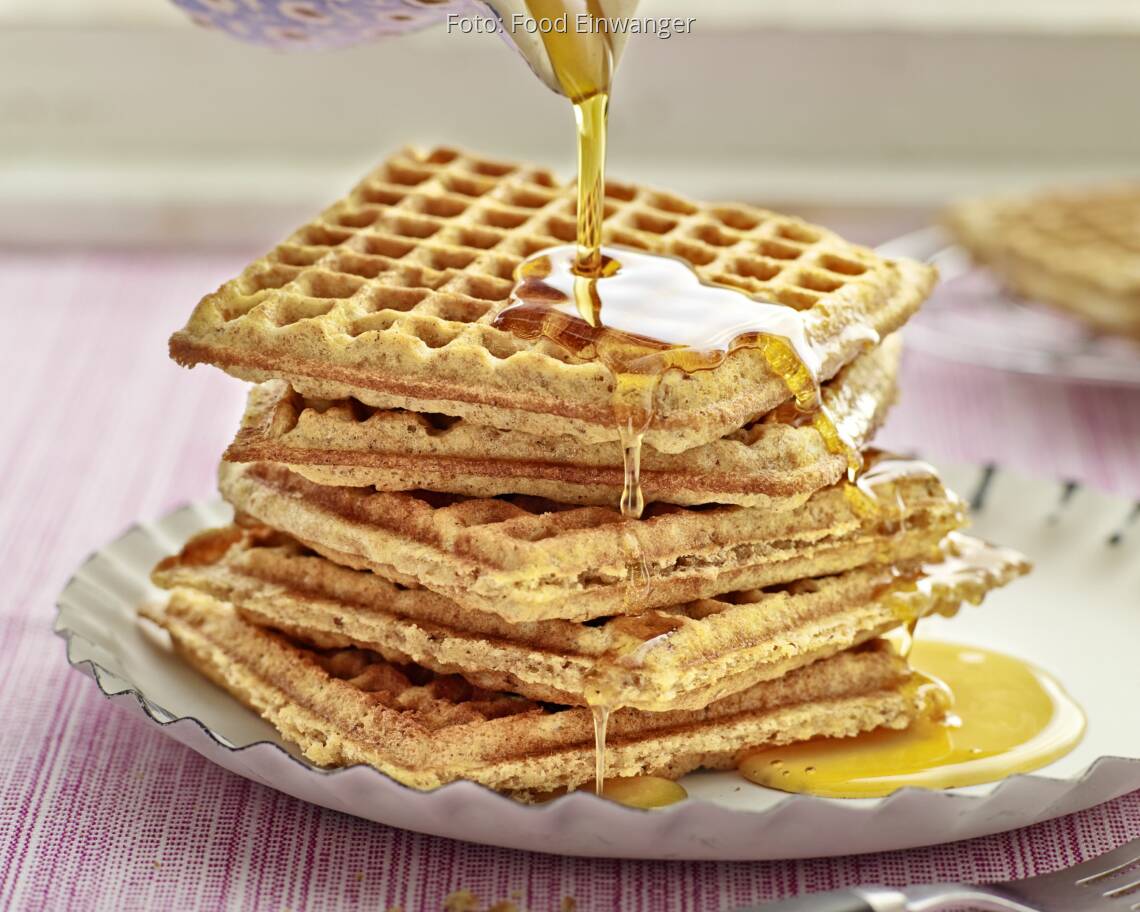Foto: Food EinwangerVollkorn-Nuss-Waffeln mit Ahornsirup