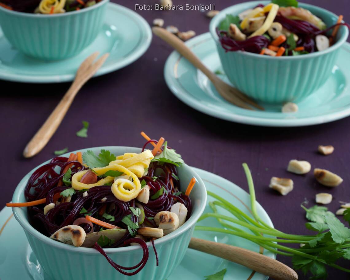 mit Rote Bete Saft, Glasnudeln, Reisessig, Sojasauce