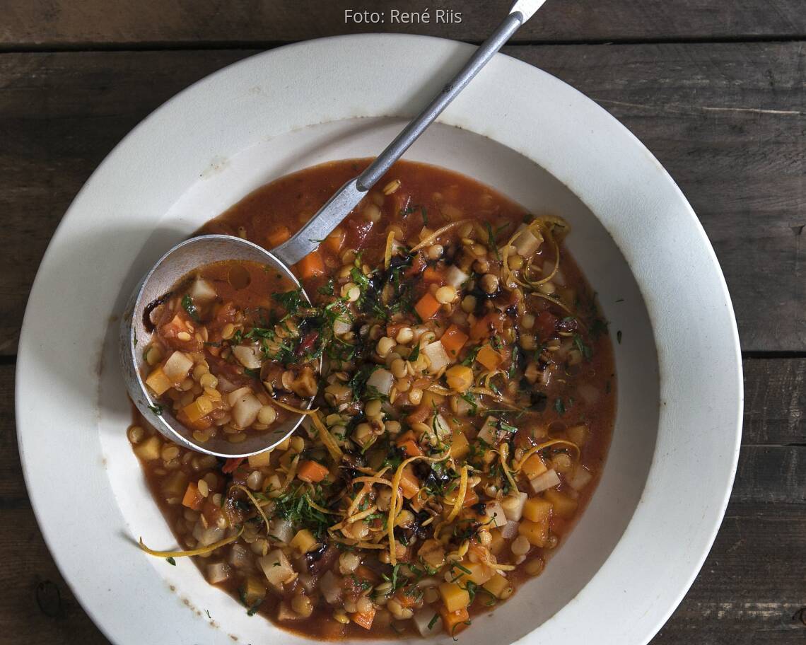Foto: René RiisWintergemüsetopf mit gelben Linsen und Topinambur