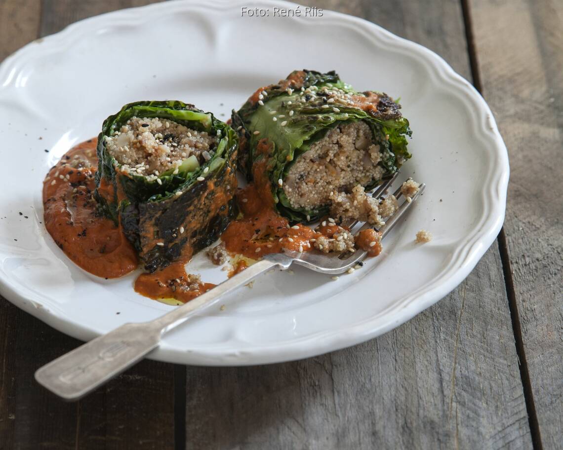 Foto: René RiisWirsingrolle mit Tomaten-Tahin-Sauce