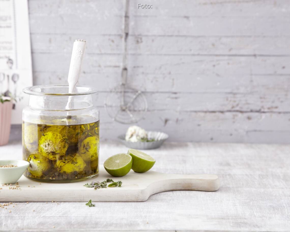 Die Frischkäsebällchen mit den Limettenschalenstreifen und den beiseitegelegten Doststängeln in das heiß ausgespülte Glas geben. Das Olivenöl darübergießen und die Kapern hinzufügen. Die Bällchen zugedeckt 2 Tage ziehen lassen. Dazu schmeckt am besten frisches Landbrot.
