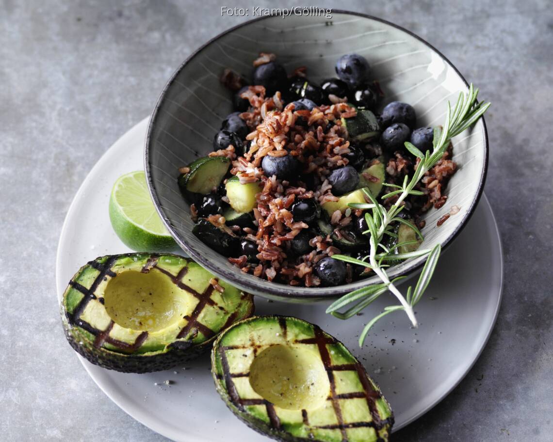 Foto: Kramp/GöllingZucchini-Beeren-Reis mit gegrillter Avocado