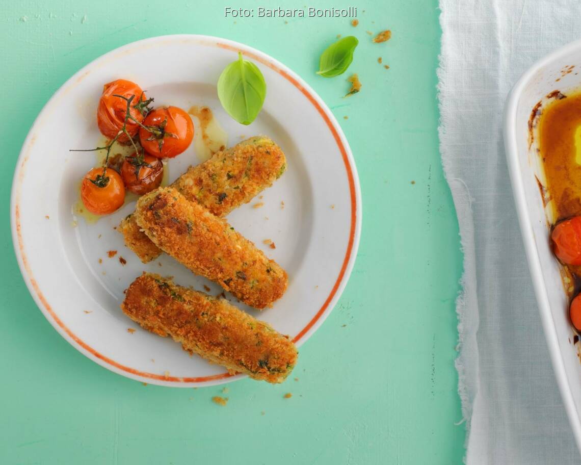 Foto: Barbara BonisolliZucchini-Kroketten mit Ofentomaten