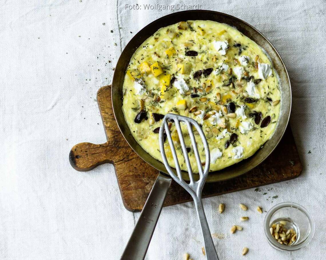 Foto: Wolfgang SchardtZucchini-Omeletts mit Oliven und Pinienkernen