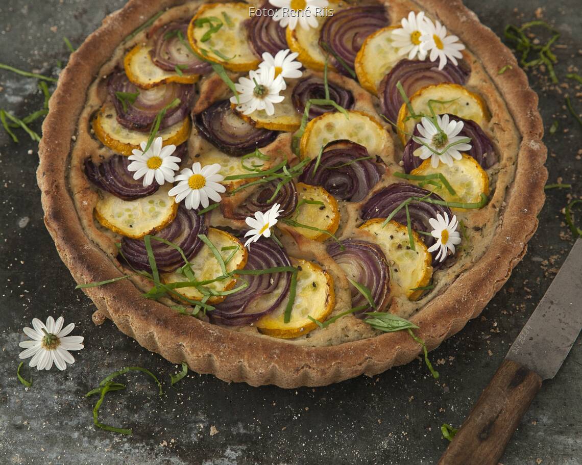 veganes Rezept von Nicole JustIm letzten Jahr hatte ich eine sehr produktive Zucchinipflanze in meinem Garten. Jeden zweiten Tag konnte ich ernten und neben anderen Köstlichkeiten auch diese leckere Tarte auf den Tisch bringen.