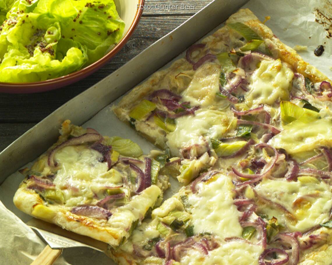 Foto: Günter BeerZwiebel-Lauch-Kuchen mit Romanasalat
