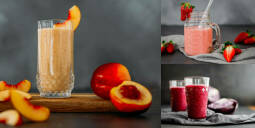 Diese Rezepte versorgen euch mit einer Extraportion Obst und Gemüse! Egal ob Green Smoothies, mit Pflanzenmilch oder leckere Fruchtbomben – in den Mixer darf was schmeckt! Für mehr Inspiration einfach einen Blick in unsere Sammlung werfen!